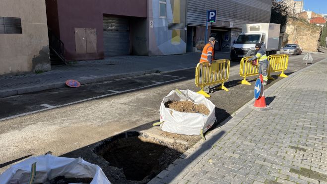 Els serveis tècnics municipals i la Brigada d’Acció Immediata treballen des de primera hora d’avui en la reparació d’un esvoranc que ha aparegut a la calçada, a l’altura del número 23 del carrer La Parra. Els equips han arribat al lloc per avaluar els danys i establir les mesures necessàries per garantir la seguretat dels vianants i conductors.