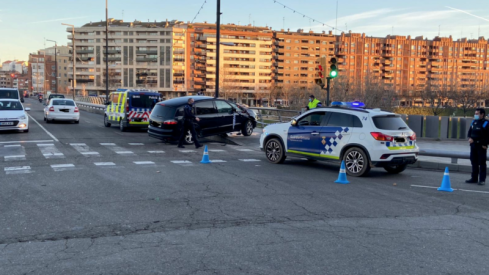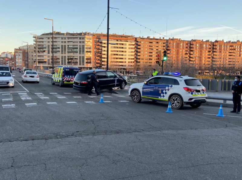 Un conductor va provocar ahir un espectacular accident al Pont Vell de Lleida. L'home, que va donar positiu en el test d'alcoholèmia, va xocar amb un taxi i després es va sortir de la via, va saltar la tanca que protegeix els vianants i va quedar aturar al mig de la vorera del Pont Vell. Segons la Guàrdia Urbana només s'han de lamentar danys materials, ja que, cap persona va resultar ferida durant l'incident.L'accident es va produir al voltant de les 5 de la tarda per causes que la Urbana està investigant, però tot apunta que va ser causat pels efectes de l'alcohol.
