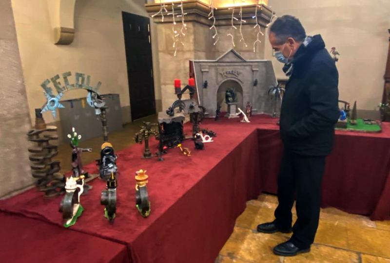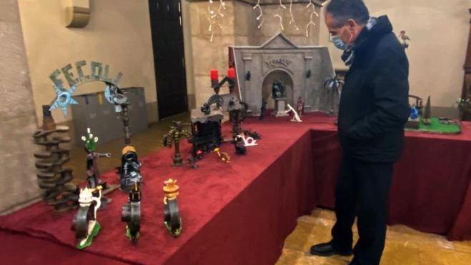 Aquesta doble condició de collista i pessebrista és la que ha fet possible aquesta exposició, que romandrà fins al 4 de gener, en què Josep A. Codony, en col·laboració amb el també collista i company seu Rafa Sariñena, també recentment traspassat, ha plasmat dins dels pessebres elements monumentals de la ciutat de Lleida, des de la Seu Vella fins al Pont de Príncep de Viana, la plaça dels Pagesos o l’emblemàtic conjunt escultòric d’Indíbil i Mandoni, entre altres. Un treball on predomina el ferro, element que Codony dominava, donada la seva condició laboral.