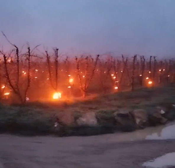 Segona nit seguida en què els pagesos de Ponent encenen foc 🔥 amb pots de parafina a prop dels arbres fruiters per defensar-los de les glaçades 🌡