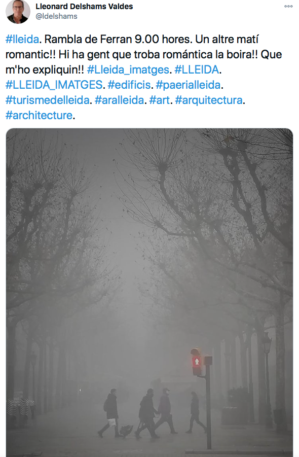 Això és el que ha passat avui quan els lleidatans s'han despertat amb una boira molt densa amb una visibilitat de tan sols 50 metres i han decidit immortalitzar el moment. Diferents xarxes socials, com Twitter i Instagram, s'han omplert de fotografies on els lleidatans han utilitzat hashtags com #boiradelleida o #boira per a compartir les imatges.