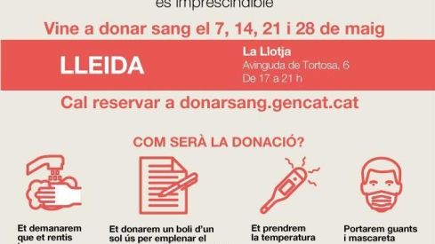 La Llotja de Lleida cedeix de nou el seu espai al Banc de Sang i Teixits per dur a terme una campanya de donació de sang, després de la bona resposta aconseguida durant els mesos de març i abril en el confinament per l’estat d’alarma de la Covid-19.