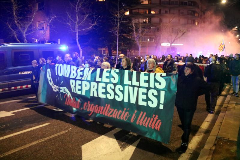 Durant la mobilització, els assistents han cridat consignes en solidaritat amb les persones encausades per diverses protestes a la demarcació, també demanant l'alliberament del Hasel, contra la llei mordassa i contra els governs català i espanyol, entre altres.