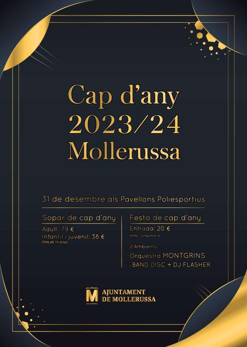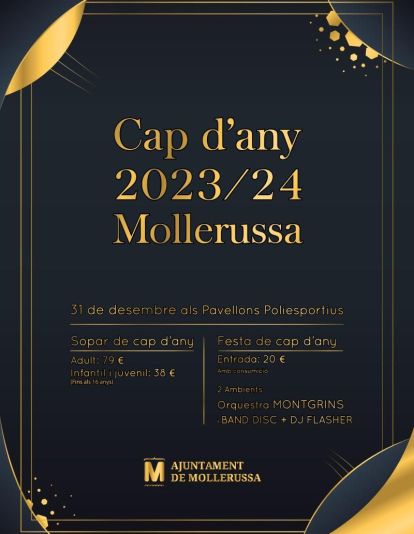 L’Ajuntament tornarà a organitzar la celebració de la Revetlla de Cap d’Any als pavellons poliesportius amb un sopar de gala d’Any amb una capacitat per a 750 comensals i la revetlla posterior, amb aforament per mil persones més. La música anirà a càrrec de l’Orquestra Montgrins, amb una actuació que tindrà una primera part amb una selecció del repertori tradicional i una segona amb la interpretació de versions d’actualitat. Així mateix, l’ambientació musical es completarà amb Band Disc i DJ Flasher.