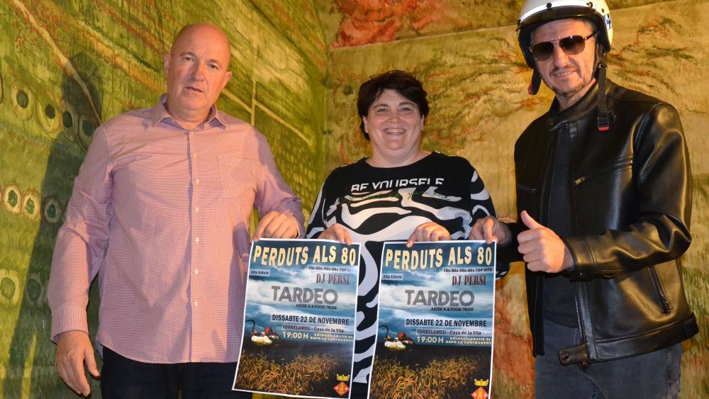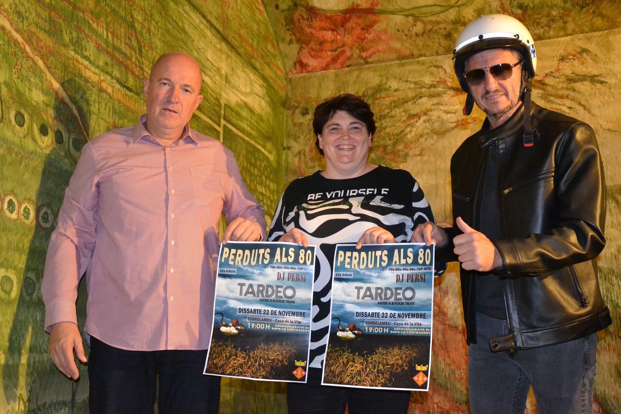 La diputada Estefania Rufach, l’alcalde de Torrelameu, Carles Comes, i el director de l’esdeveniment, Josep Maria Tersa, han presentat aquest dijous la 10a Festa del Vespreig de Torrelameu ‘Perduts als 80’, que tindrà lloc el dissabte 22 de novembre a la Casa de la Vila, a partir de les 19.00 h, amb música a càrrec de DJ Persi, que repassarà els top hits des dels anys 70 fins als 90.