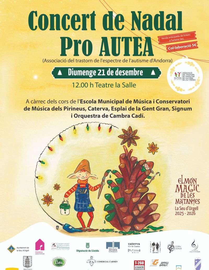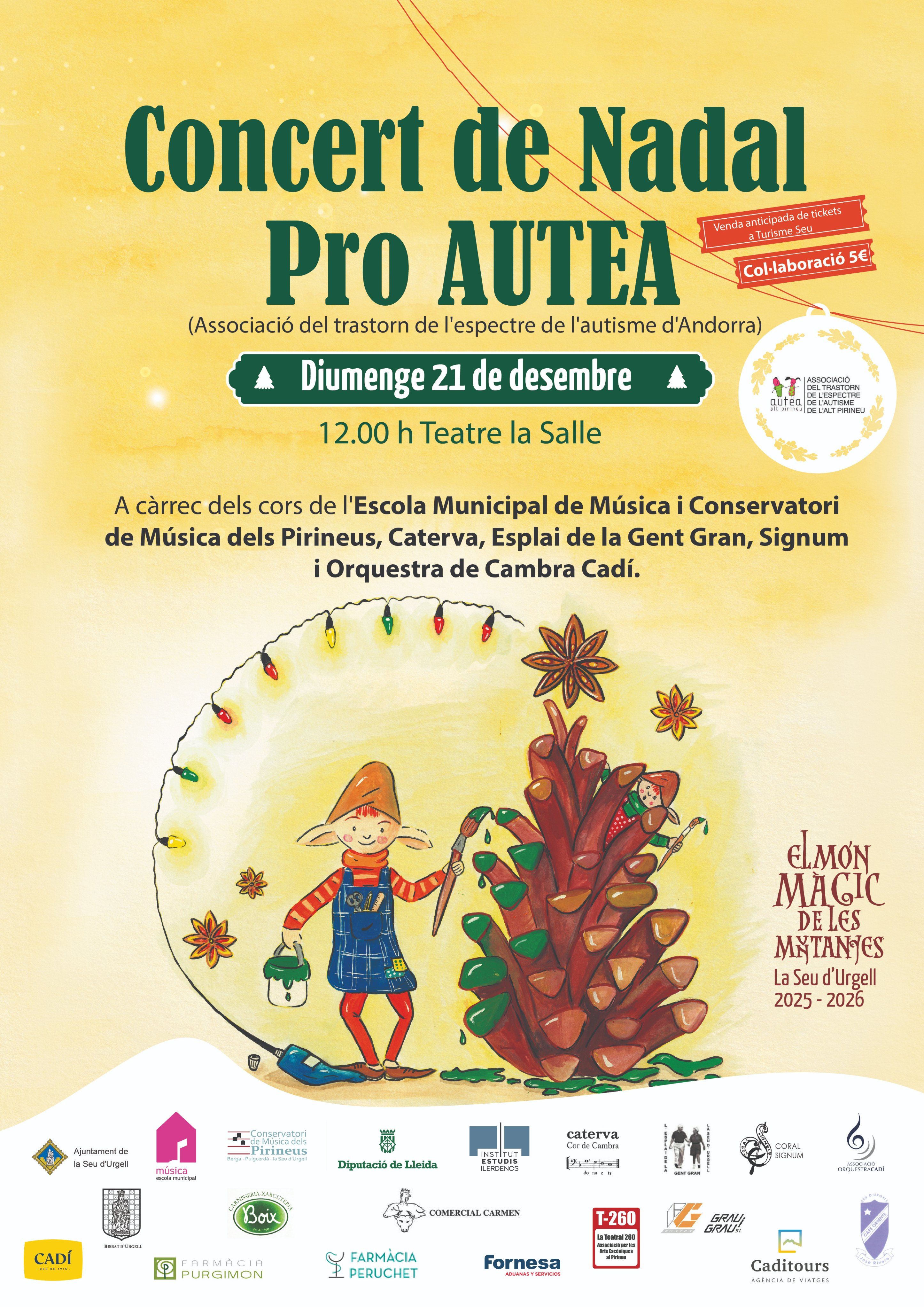 Enguany s’ha considerat que el concert sigui Pro Associació del Trastorn de l’Espectre de l’Autisme de l’Alt Pirineu (AUTEA), pel que es demanarà una col·laboració de 5 € al públic assistent.
