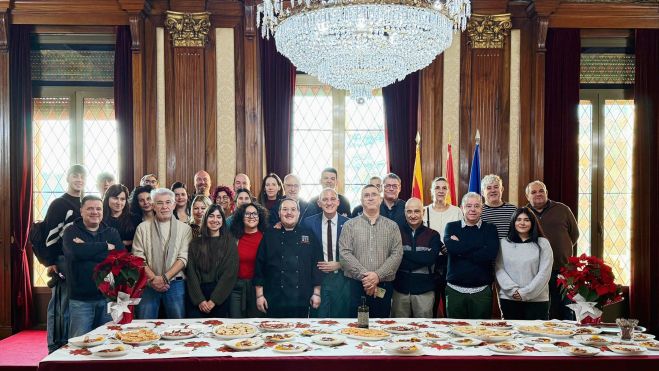 L’Esmorzar de Nadal a la Subdelegació ha comptat amb la col·laboració del restaurador Marc Cabacerans, propietari del Brito’s Casual Bar de Lleida i guanyador els anys 2021, 2023 i 2024 del certamen gastronòmic Porc Passió, que organitza la Federació d’Hostaleria de Lleida i Gastronomia de Lleida per promocionar la carn de porc en les cartes de restaurants i bars de Lleida.