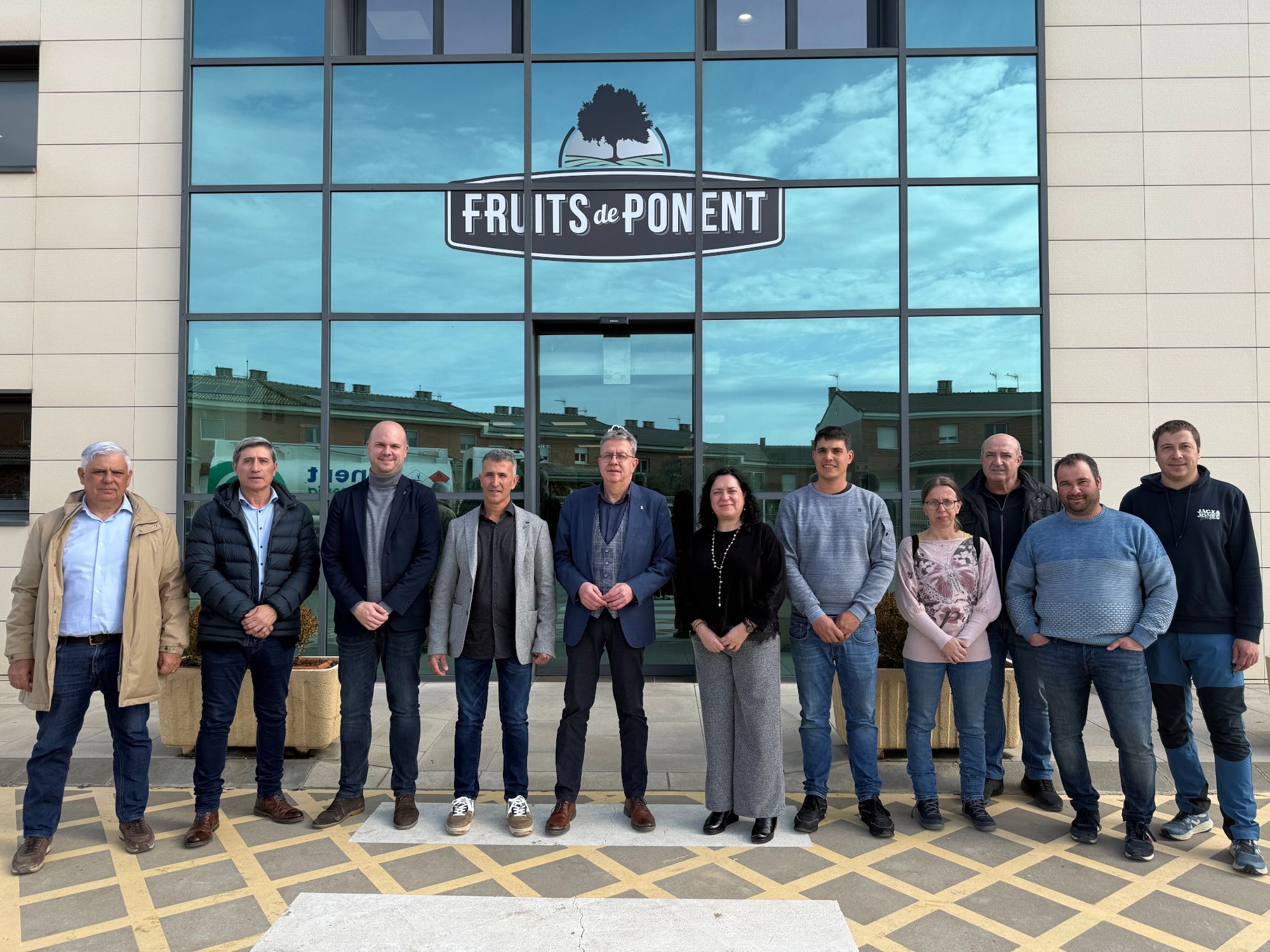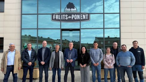 El president de la Diputació de Lleida, Joan Talarn, acompanyat del vicepresident del Patronat de Promoció Econòmica, Jordi Verdú, ha visitat aquest dimecres el Grup Cooperatiu Fruits de Ponent, amb seu a Alcarràs, acompanyat del seu president, Miquel Serra, i de la directora general, Maria Jesús Sisó, i s’ha reunit amb el consell rector.