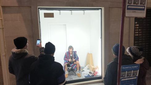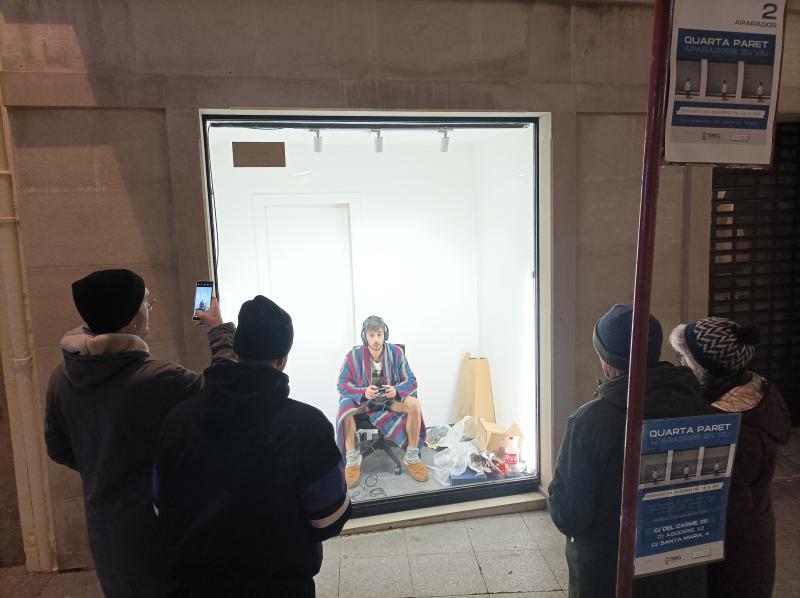Creació artística, reflexió social i comerç s’han donat la mà avui a Tàrrega gràcies a una nova acció de dinamització impulsada des de la Regidoria de Promoció Econòmica. Durant la tarda, tres aparadors buits del cTTentre han acollit “performances” a càrrec de CRUMA, escola de teatre creada a la capital de l'Urgell per la companyia Emília Gargot. Amb el títol de “Quarta paret. Aparadors en viu”, s’han omplert de vida locals comercials ara en desús situats als carrers del Carme, Agoders i Santa Maria. Així, les persones que passejaven i realitzaven les seves compres han gaudit encuriosides de les tres accions escèniques de CRUMA, les quals tenien com a eix temàtic l’aïllament social.