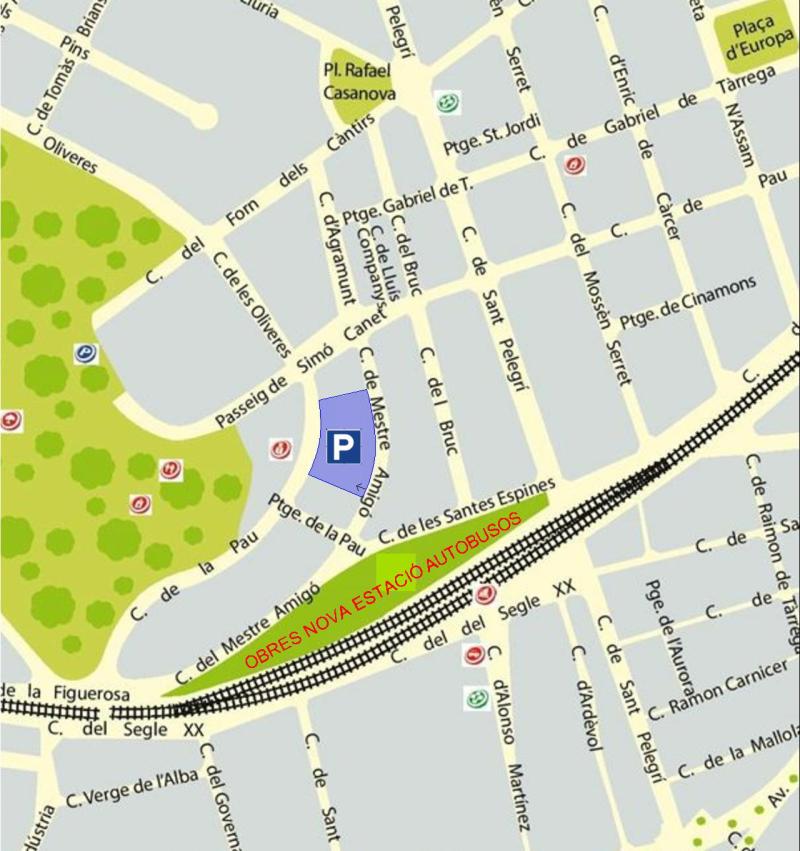 La nova àrea d’estacionament, que ja ha entrat en servei, s’ha habilitat al número 22 del carrer del Mestre Amigó, també a pocs metres de l’estació de tren. Alhora el consistori ha posat cartells avisant que a finals de la setmana vinent ja no es podrà deixar el vehicle al pàrquing dels antics molls de la via.