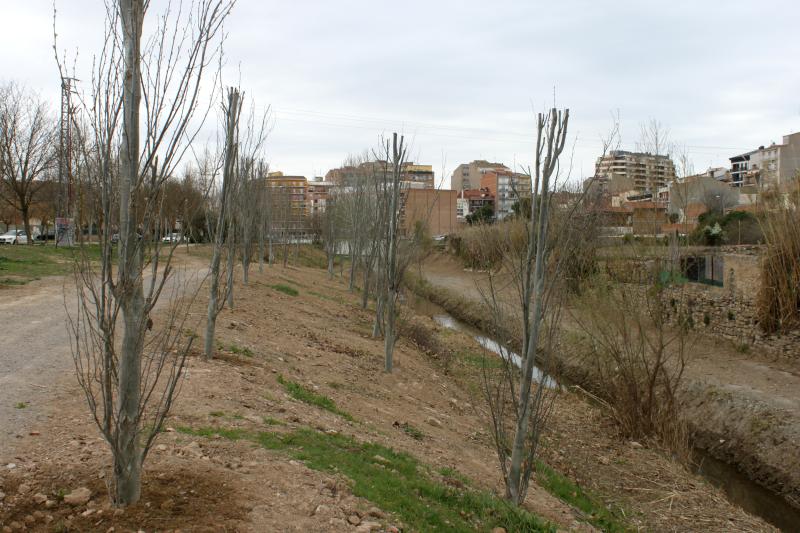 A més a més, els terrenys de la llera s’han revegetat mitjançant la plantació d’una seixantena d’arbres (30 àlbers o Populus alba i 30 freixes o Fraxinus) i fins a 150 arbustos autòctons, augmentat així la riquesa biològica i paisatgística.