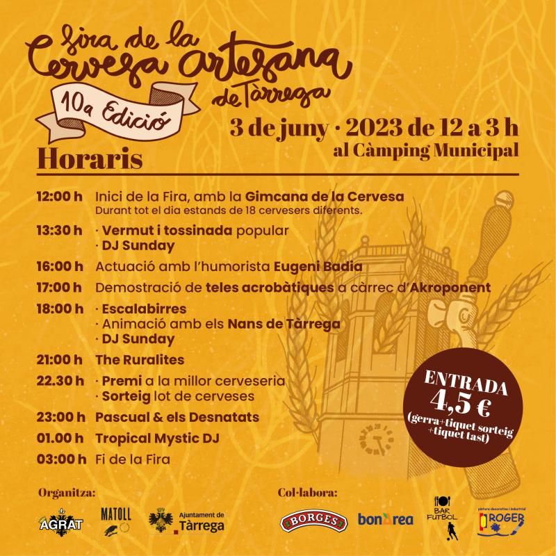 La Regidoria de Promoció Econòmica de Tàrrega dona suport a la Fira de la Cervesa Artesana, que també compta amb diverses col·laboracions d'empreses del territori com Borges, BonÀrea, Pintures Roger i Bar Futbol.