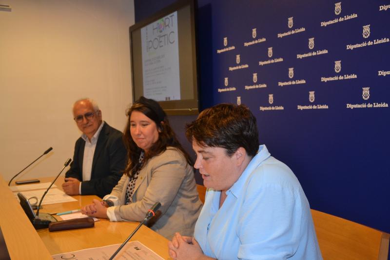 La vicepresidenta de l’IEI, Estefania Rufach; l’alcaldessa de Bellvís, Sílvia Escalé, i l’organitzador de la trobada, Jaume Suau, han participat aquest dilluns en la roda de premsa de presentació del llibre ‘Hort Poètic’, que enguany ha arribat a la setena edició, i que compta amb il·lustracions de Josep Vallverdú. El president de la Diputació, Joan Talarn, ha donat la benvinguda als participants en la presentació. L’edició de la publicació ha anat a càrrec de l’Ajuntament de Bellvís i els Arcs i de l’IEI.