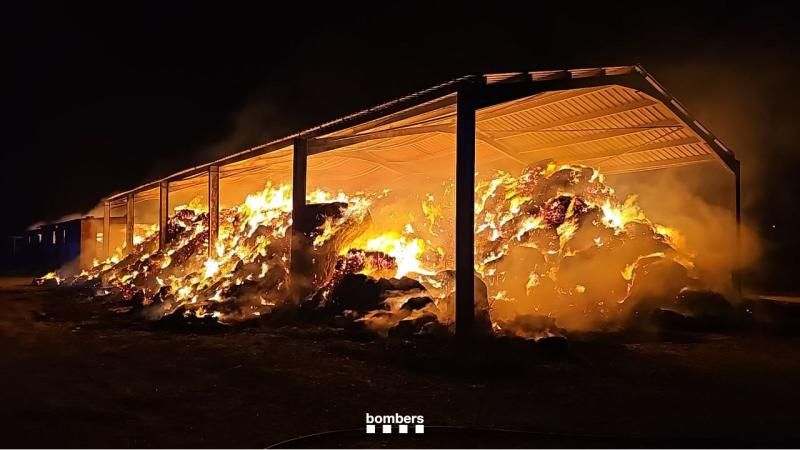 L'avís es va rebre a les 22.07 hores i fins a vuit dotacions dels Bombers es van desplaçar fins al lloc dels fets per controlar la situació i evitar la propagació del foc. A més de les dotacions, també s'ha comptat amb maquinària agrícola per retirar les bales de palla situades a l'exterior, al sud de les naus afectades.