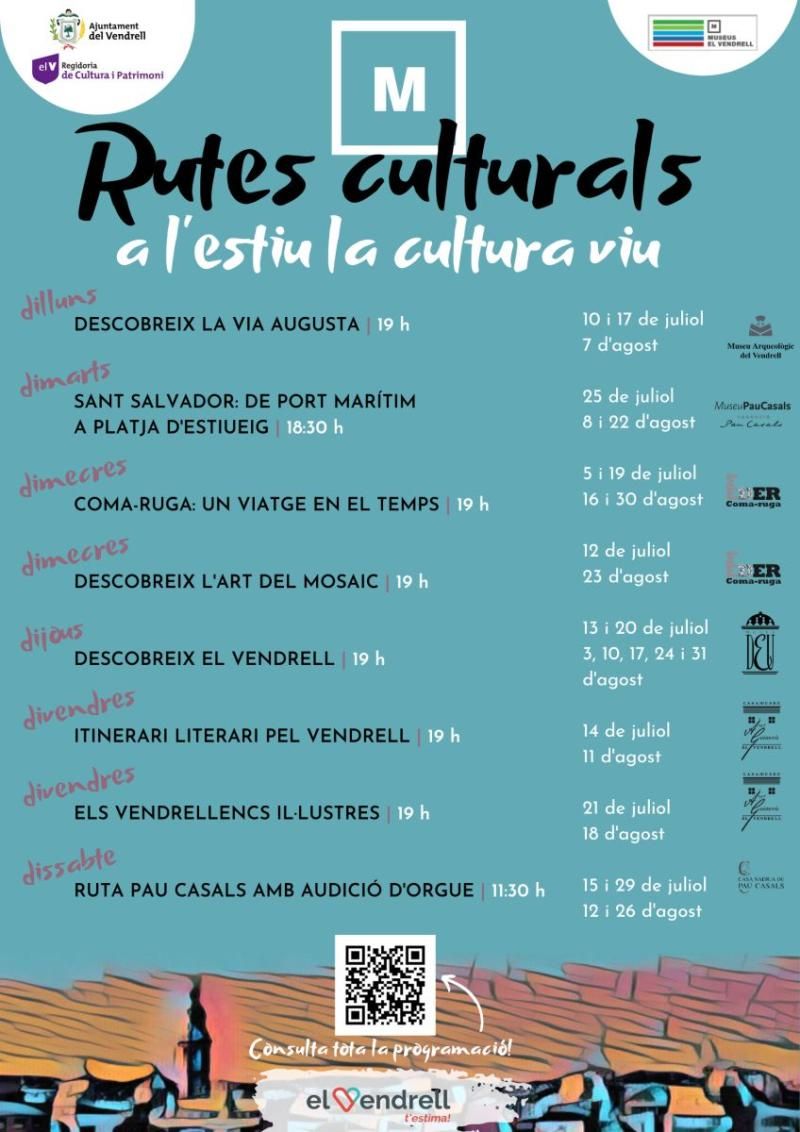 Les rutes “Descobreix la Via Augusta”, “Descobreix el Vendrell”, “Itinerari literari pel Vendrell”, “Els vendrellencs il·lustres” i la “Ruta Pau Casals amb audició d’orgue” tenen un preu de 5 € per persona i per als menors de 12 anys són gratuïtes. Les entrades es poden adquirir des del web dels Museus del Vendrell https://museus.elvendrell.net, i es pot aclarir qualsevol dubte o fer una consulta al telèfon 977 66 56 84 o al correu electrònic elvendrell.elsmuseus@elvendrell.net
