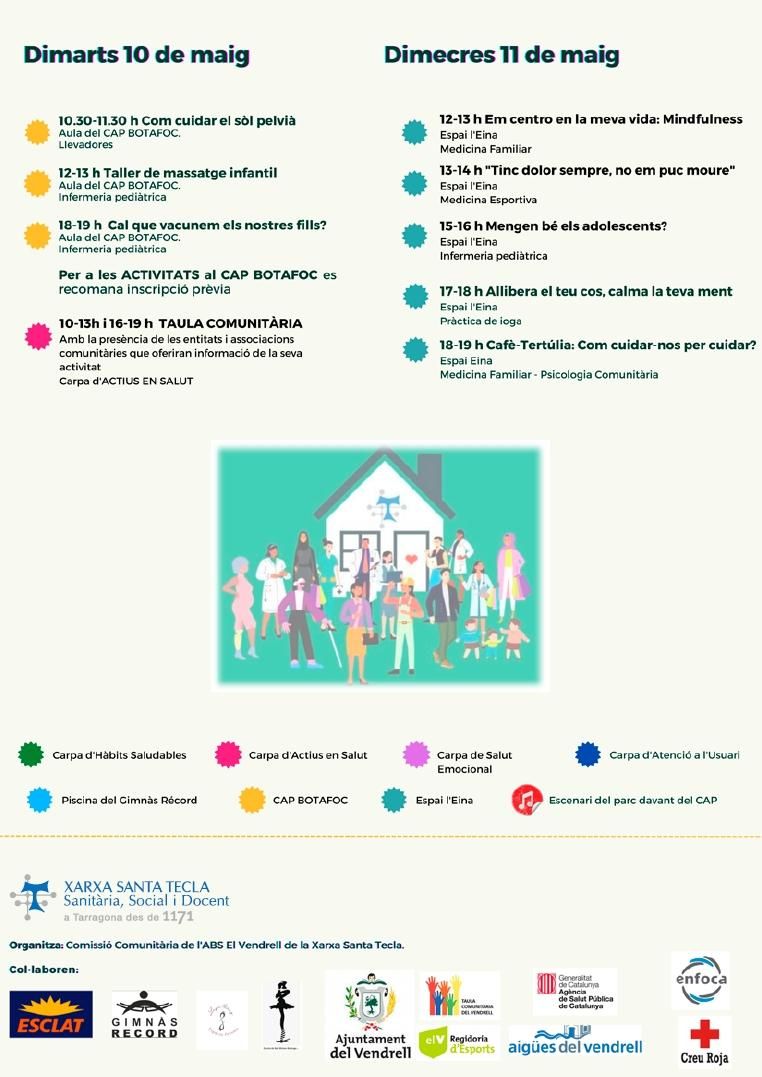 D’aquesta manera, els dies 10 i 11 de maig s’oferiran a la població tallers, xerrades, activitats i formacions relacionades amb la promoció i prevenció de la salut.