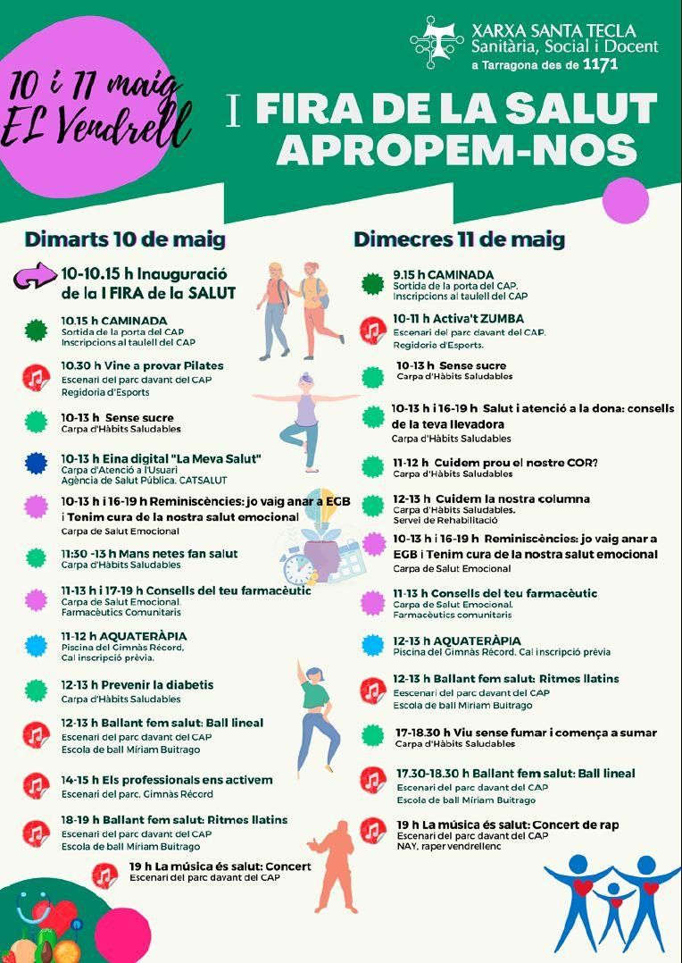 La Comissió Comunitària de la Àrea Bàsica de Salut (ABS) El Vendrell de la Xarxa Santa Tecla, en col·laboració amb la Regidoria de Salut de l'Ajuntament del Vendrell, organitza la 1a Fira de la Salut Comunitària ‘’Apropem-nos’’, que tindrà lloc els dies 10 i 11 de maig en diferents espais del municipi.