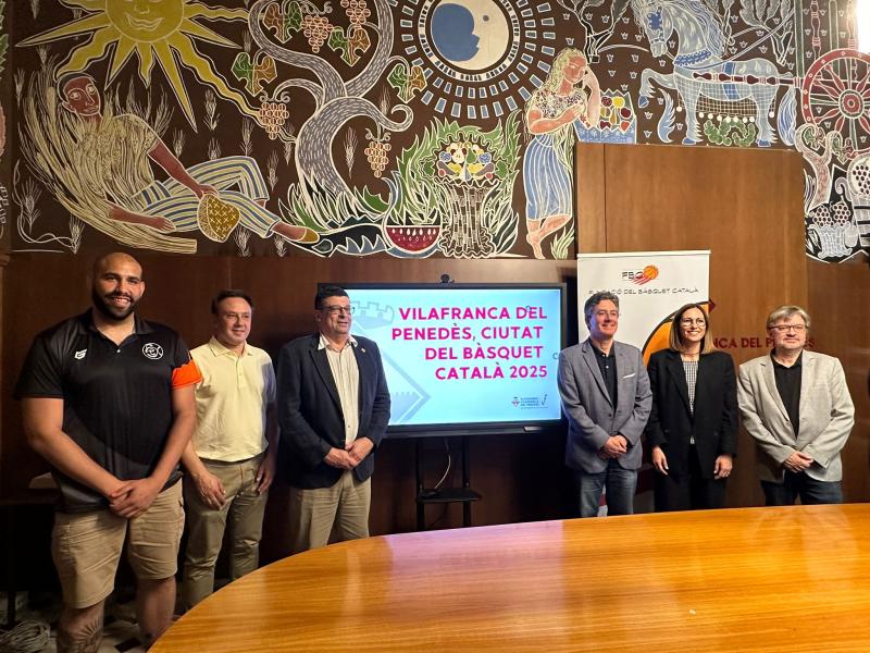 Aquest dimarts 18 de juny la sala Pau Boada de la Casa de la Vila ha acollit l’acte de designació de Vilafranca del Penedès com a Ciutat del Bàsquet Català 2025 i la signatura dels compromisos d'actuacions per part de la Fundació Bàsquet Català i l'Ajuntament de Vilafranca. L’acte ha comptat amb la presència de Francisco Romero, alcalde de Vilafranca del Penedès; Ferran Aril, president de la Fundació del Bàsquet Català (FBC) i de la Federació Catalana de Basquetbol (FCB); Gemma Romeu, regidora d’Esports; Marcel Esteve i Jordi Tarrida, representant la Secció Esportiva Casal Vilafranca, i Ernesto Ginebra, en representació del Club Esportiu Xamba, els dos clubs de bàsquet de la ciutat.