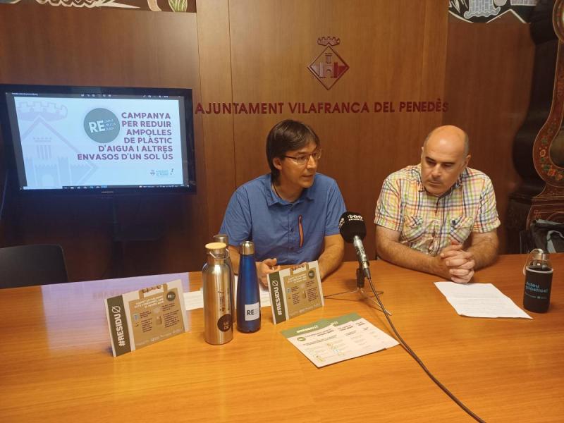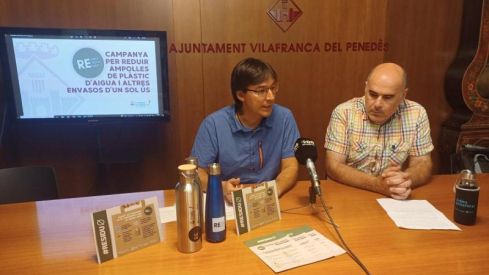 Amb el lema REomple, REutilitza i REdueix, l’Ajuntament de Vilafranca ha presentat una campanya per reduir el volum dels envasos sobretot ampolles de plàstic d’aigua i altres envasos d’un sol ús. La presentació ha anat a càrrec del regidor de Transició Ecològica, Miquel Medialdea, i del vicepresident en funcions de l’àrea d’Educació Ambiental de la Mancomunitat Penedès-Garraf, Jordi Bosch. La campanya, que es durà a terme mitjançant la publicació de 3 vídeos a les xarxes socials, per conscienciar sobre l’ús indiscriminat d’ampolles de plàstic, envasos d’un sol ús i el malbaratament alimentari.