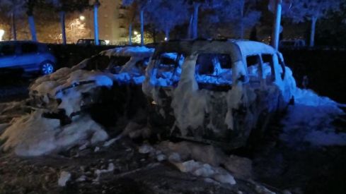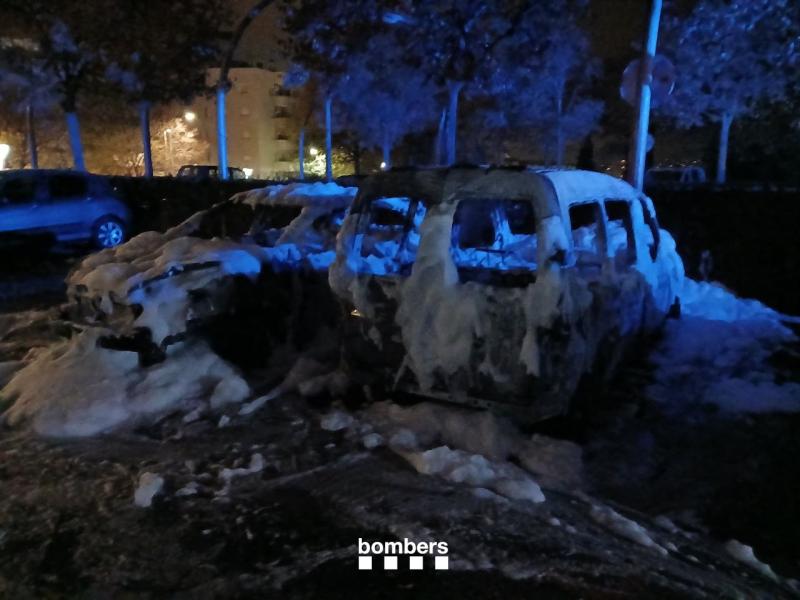 A les 00.45 hores, es va rebre l'avís del fet que es veien flames en un pàrquing exterior al costat del cementiri. Una dotació s'ha desplaçat al lloc de l'incident i a més d'apagar el foc dels vehicles calcinats, han treballat en apagar uns matolls del voltant que s'havien també incendiat.