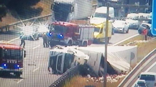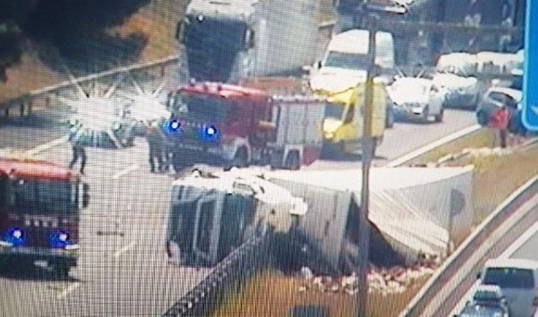 Quilòmetres de cues a l'AP-7 per un camió bolcat a Vilafranca del Penedès