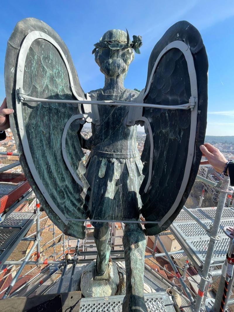 La bastida es va muntar el passat mes de febrer i un cop executades les tasques al campanar, es van realitzar la de l'àngel. A principis d'aquest mes d'abril es va desmuntar la bastida i es va dur a terme el nou muntatge de l'enllumenat.