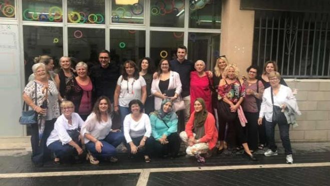 Durant aquest acte d’inauguració van iniciar un mural decoratiu en els cristalls del local, amb motiu de Dones, amb la magnífica aportació del " Grup Arístic" de la Fundació Santa Teresa del Vendrell.