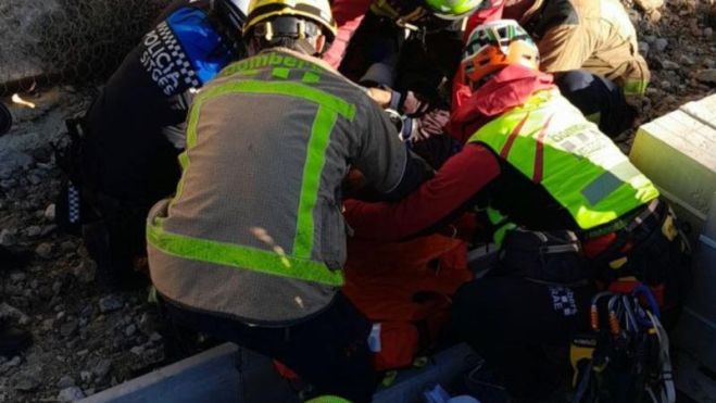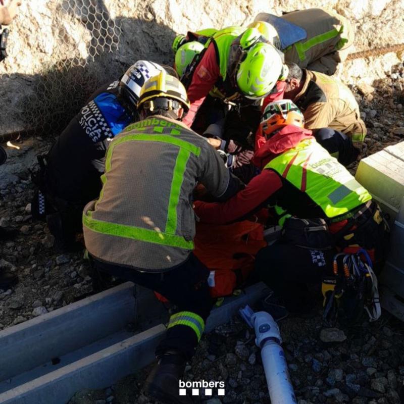 Els Bombers han rescatat aquest matí una persona després de caure per un penya-segat d'entre 20 i 30 metres a la zona de Cala Xica de Sitges (Garraf). El cos d'emergències ha rebut l'avís de l'accident poc abans de tres quarts de deu del matí i ha activat la unitat de rescat amb l'helicòpter i efectius del Grup d'Actuacions Especials (GRAE), el metge del Sistema d'Emergències Mèdiques (SEM) i 3 dotacions terrestres de suport. El ferit s'ha localitzat conscient en una zona de difícil accés just al costat de les vies del tren. És per això que s'ha demanat el tall de la tensió de la catenària per facilitar les tasques als efectius i poder treballar amb seguretat. A lloc també han intervingut efectius de la Policia Local del municipi.