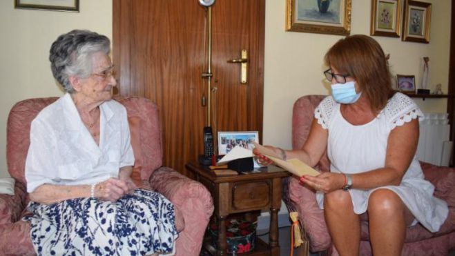 L’Ajuntament de Cubelles ha homenatjat aquest divendres dia 6 d’agost la cubellenca Maria Pedro i Aviñó pel centenari del seu naixement. L’alcaldessa de la vila, Rosa Fonoll, i la regidora de la Gent gran, Alexandra Corvillo, s’han desplaçat fins al seu domicili per lliurar-li una carta de felicitació, un ram de flors i una placa commemorativa entre d’altres obsequis.