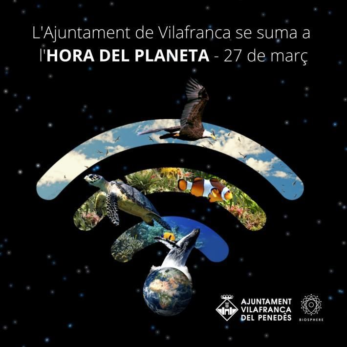 L’Ajuntament de Vilafranca del Penedès s’adhereix a la iniciativa “L’Hora del Planeta 2021” que tindrà lloc aquest dissabte 27 de març. L’Hora del Planeta és un esdeveniment mundial que consisteix en apagar les llums d’edificis significatius durant una hora, com a gest simbòlic per cridar l’atenció sobre el problema del canvi climàtic i la pèrdua de biodiversitat.