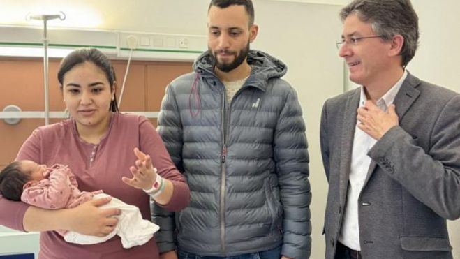 L’Ajuntament de Vilafranca del Penedès dona la benvinguda a la primera vilafranquina de l’any 2024, una nena de nom Aya, que és també el primer nadó nascut a la comarca. L'alcalde FranCisco Romero i el tinent d’alcalde Ramon Zaballa, acompanyats de la Dra. Olga Farré, gerent del Consorci Sanitari Alt Penedès Garraf, han visitat aquest dijous al matí la família Daoudi Kerroum per felicitar l'arribada de l'Aya, que néixer la matinada del dimecres 3 de gener a l'hospital comarcal de l'Alt Penedès.