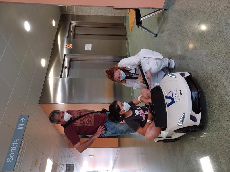 La responsable de l'empresa Vallvé, Alejandra Vallvé, ha estat rebuda per representants de la Xarxa Santa Tecla i de l'Hospital del Vendrell, entre els quals el director del centre Josep Mercadé, i el director adjunt de la Xarxa Santa Tecla, Joan Aregio, així com per una petita usuària del centre sanitari, que ha pogut provar el vehicle.
