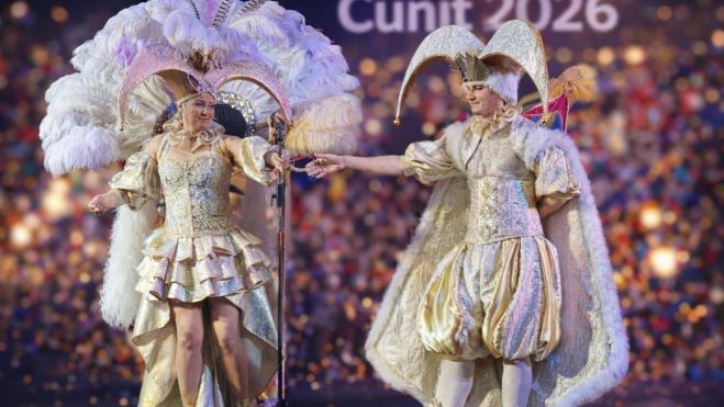 La colla Lunatics va estrenar dissabte el seu regnat al Carnaval de Cunit amb una presentació dividida en dues sessions que van reunir públic, memòria i espectacle. L’acte coincideix amb el 20è aniversari de la colla, una efemèride que van voler reivindicar amb un recorregut per totes les disfresses que han lluït des del 2006, guiats per una parella de presentadors que van aportar ritme i complicitat a l’escenari.