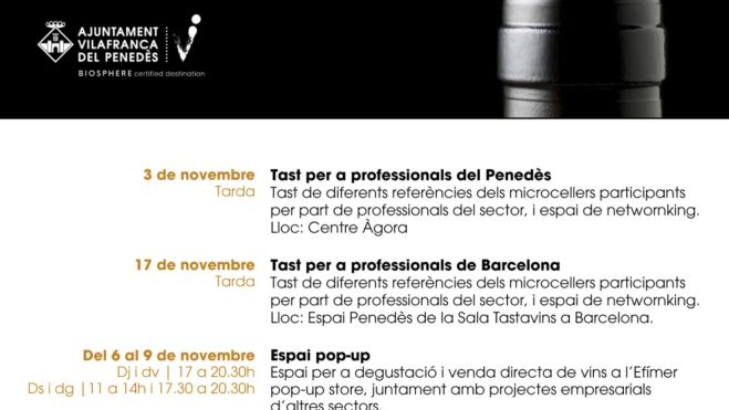 - Campanya gastronòmica “Vins del Penedès a taula”, del 10 al 23 de novembre, amb restaurants de la comarca que oferiran vins del programa i sortejaran sis lots entre els clients participants.