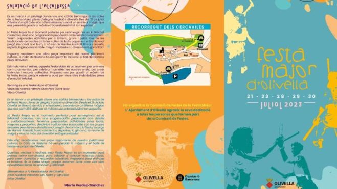 Olivella viurà la Festa Major 2023 els dies 21, 23, 28, 29 i 30 de juliol. La Regidoria de Festes i la Comissió de Festes han preparat un programa d'actes i d'activitats variat i adreçat a tots els públics.