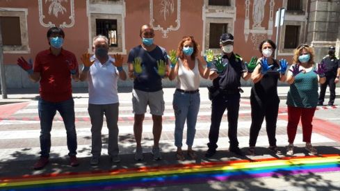 La regidora d’Igualtat, Montse Arroyo, i els regidors de Cultura i Via Pública, Ricard Rafecas, i de Joventut i Governació, Miquel Medialdea, acompanyats tècniques i de tècnics dels serveis d’Igualtat, Via Pública, Joventut, Policia Local i Cultura, han dut a terme el pintat d’una franja del pas de vianants situat a la rambla de Sant Francesc, davant de l’escola Sant Josep i Santa Anna, amb la bandera de l’arc de Sant Martí, la bandera multicolor que representa el col·lectiu LGTBIQ+. El mateix dia, en horari de tarda l’Agrupament Escolta AEIG Pere II i Sta. Maria de Foix, també realitzaran el pintat de dos bancs ubicats al parc Tívoli, amb la participació dels i les joves de la unitat Pioners i Caravel·les.