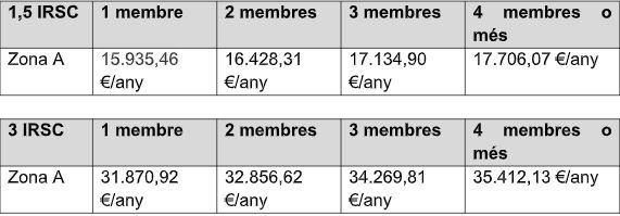 També han d’estar empadronades al municipi de Sant Pere de Ribes en els darrers 3 anys. Els ingressos que ha de tenir la unitat convivència hauran de ser entre els 1,5 i 3 Indicador de Renda de Suficiència (IRSC) (per a la Zona A – Sant Pere de Ribes).