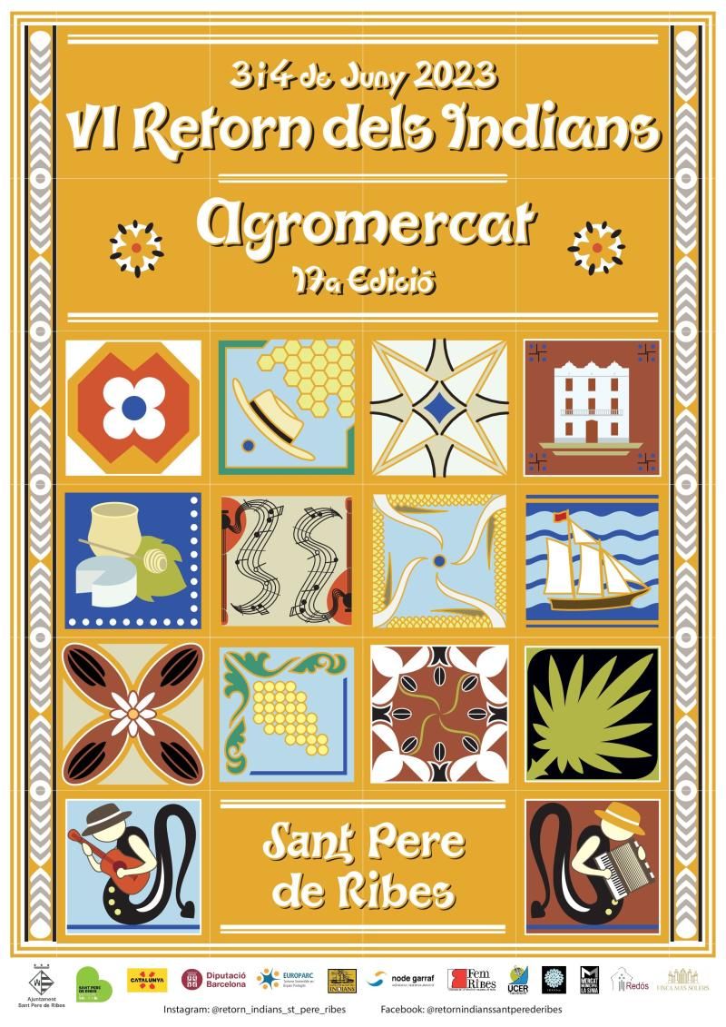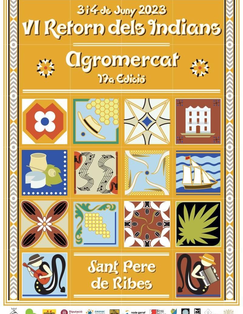 Ja s’ha donat a conèixer el cartell amb les dates de la 6a edició del Retorn dels Indians i la 17a edició de l’Agromercat, que se celebraran conjuntament els dies 3 i 4 de juny al centre de Ribes. Es tracta d’una il·lustració d’un mosaic de rajoles hidràuliques amb elements musicals, artístics i gastronòmics relacionats amb la temàtica de la fira. Si l’any passat es va dedicar a la dona de l’època, en aquesta ocasió els protagonistes seran, doncs, l’art, la cultura i la gastronomia i servirà per conèixer una mica més diferents aspectes d’aquell període. És previst que en els pròxims dies també es presentarà la programació i activitats d’enguany.