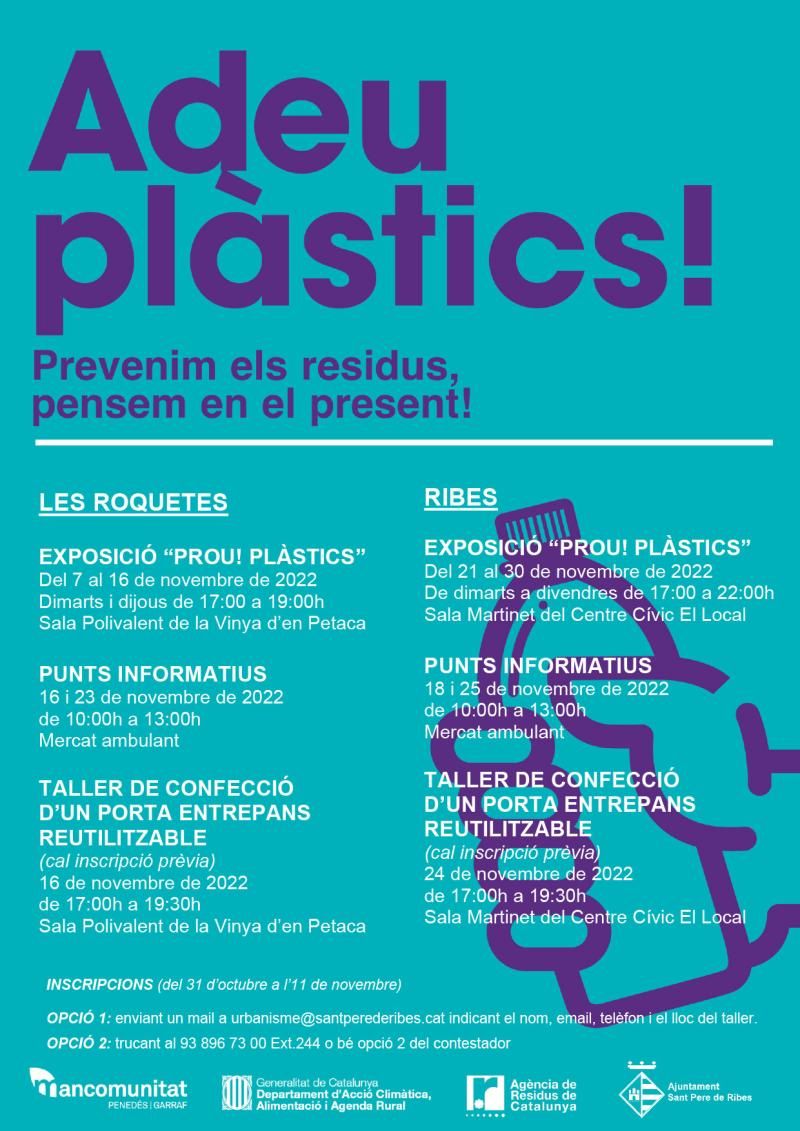 Sant Pere de Ribes vol reduir l’ús del plàstic i, amb aquesta finalitat, ha iniciat la campanya de sensibilització “Adeu, plàstics” elaborada per la Mancomunitat Penedès-Garraf amb l’objectiu de donar alternatives al plàstic d’un sol ús.