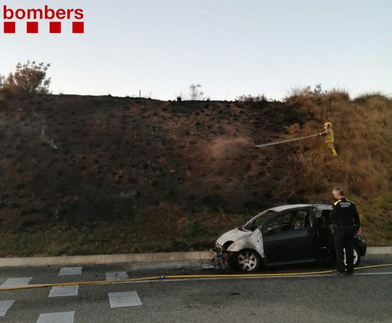 Els Bombers de la Generalitat han treballat en un foc a un vehicle a Vilafranca del Penedès a la sortida del peatge de l'AP-7. El vehicle s'ha cremat completament i ha agafat també el marge de la carretera.L'avís es va produir ahir a la tarda a les 17.12 hores i els bombers hi han treballat amb 2 dotacions.Segons fonts dels bombers, els ocupants han resultat il·lesos.