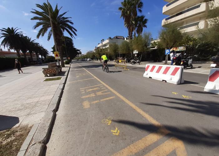 El carril bici definitiu ocuparà una part de l’espai de l’actual (i provisional) carril bici, una via que es va obrir durant el desconfinament per poder separar vianants de ciclistes al passeig i així mantenir les mesures de seguretat i salut anti Covid-19. La seva obertura va suposar la suspensió dels aparcaments de zona blava, que amb les obres quedaran eliminats definitivament. Les zones d´aparcament rotatiu ja es van traslladar als carrers adjacents, així com els aparcaments per discapacitats i motos.