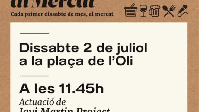 L’actuació de Javi Martín Project començarà a les 11.45h, i seguidament, amb motiu del 20è aniversari del restaurant del mercat, El Cigró d’Or, actuarà el grup Set de Rumba. A partir de les 19.30h continuaran els actes de celebració de l’aniversari amb més oferta musical i gastronòmica, amb Carles Sanahuja i al vespre, Enric Alegre & Perdiu Grouse Band.