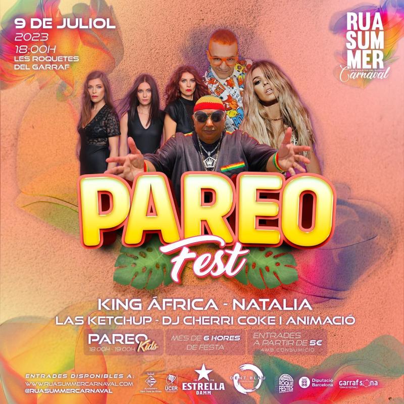 El diumenge 9 es clourà la programació amb el Pareo Fest i les actuacions de Las Ketchup, King África i Natàlia Rodríguez per reviure les cançons de l’estiu d’altres anys. Les entrades són a la venda a www.ruasummercarnaval.com, on també es pot consultar tota la informació i programació.
