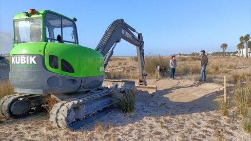Des de fa unes setmanes s'estan fent treballs de condicionament d’espais de la platja de Coma-ruga abans de la temporada de cria d'aus al litoral.