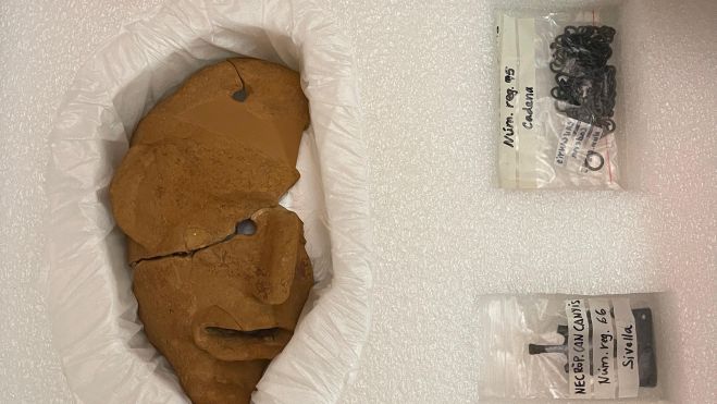 En concret, es tracta de la màscara de Mas d’en Gual, i d’una de les sivelles i de l’ornament tipus collar de Can Canyís. Les tres peces cedides es troben habitualment exposades al Museu Deu.