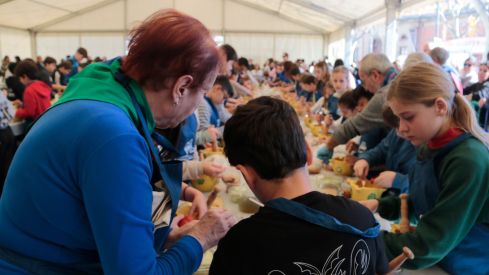 D’altra banda, nens com la Carla, una participant de deu anys que ja és veterana en aquesta mostra —és el seu tercer any— destaquen alguns moments més complicats durant l’elaboració, especialment quan cal trencar les avellanes amb el morter.