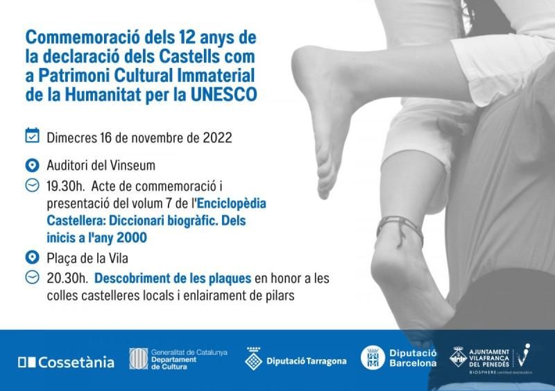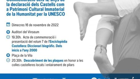 El dimecres 16 de novembre, a les 19.30 h, tindrà lloc a l’auditori de VINSEUM, un acte per celebrar els 12 anys de la declaració dels Castells com a Patrimoni Immaterial de la Humanitat per la UNESCO, que va esdevenir a Nairobi (Kènya) el mateix dia de l’any 2010.