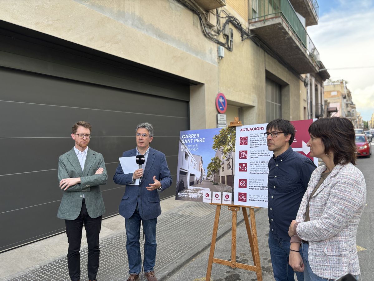 Aquest dilluns, 20 d'abril, Vilafranca del Penedès ha començat les obres de reurbanització del carrer Sant Pere, un dels eixos importants de comunicació entre barris a la ciutat. L'alcalde, Francisco Romero, ha comparegut aquesta tarda per explicar les actuacions que comprèn el projecte i els detalls de les fases d'execució previstes. En la compareixença també han estat presents el regidor d'Espai Públic, Miquel Medialdea, i del portaveu del grup municipal d'Esquerra-100xcent Vilafranca, Pere Sàbat, donat que aquesta actuació figurava en l'acord de pressupostos subscrit amb visió plurianual entre aquest grup i l'equip de govern Socialista.