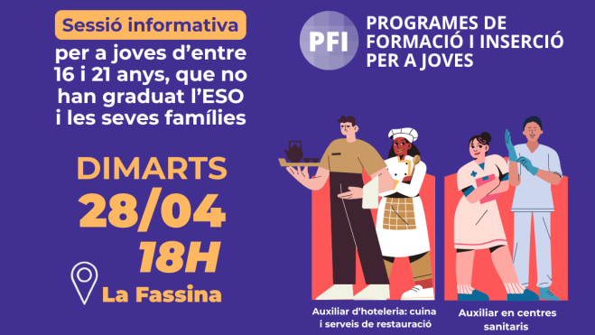 L'Ajuntament de Vilafranca del Penedès ha organitzat una jornada de portes obertes el 28 d'abril a les 18 h adreçada als joves i les seves famílies per donar a conèixer els Programes de Formació i Inserció (PFI) en les especialitats d’auxiliar de serveis de restauració i cuina i auxiliar en centres sanitaris que s'imparteixen al recinte de la Fassina. Les persones interessades poden inscriure's a la sessió, a través del tràmit Jornades de Portes Obertes PFI de la seu electrònica municipal.