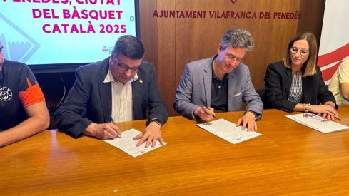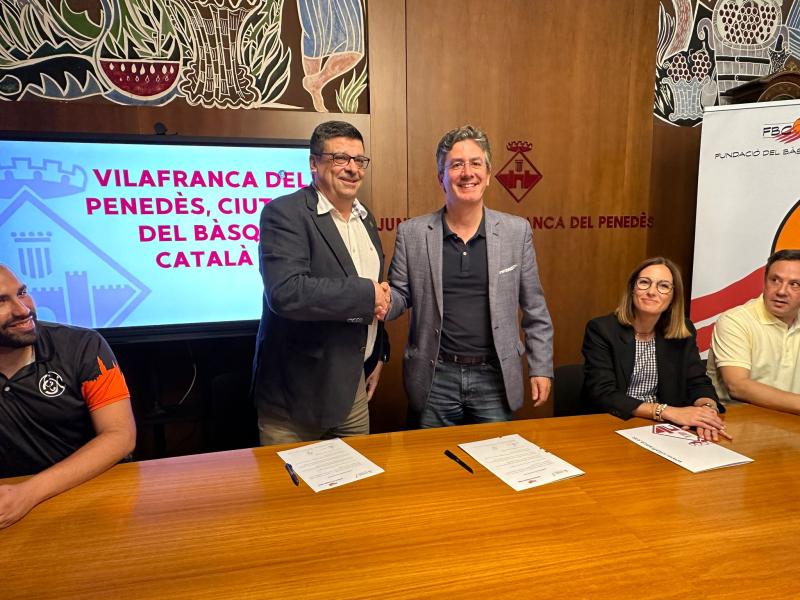 Aquest dimarts 18 de juny la sala Pau Boada de la Casa de la Vila ha acollit l’acte de designació de Vilafranca del Penedès com a Ciutat del Bàsquet Català 2025 i la signatura dels compromisos d'actuacions per part de la Fundació Bàsquet Català i l'Ajuntament de Vilafranca. L’acte ha comptat amb la presència de Francisco Romero, alcalde de Vilafranca del Penedès; Ferran Aril, president de la Fundació del Bàsquet Català (FBC) i de la Federació Catalana de Basquetbol (FCB); Gemma Romeu, regidora d’Esports; Marcel Esteve i Jordi Tarrida, representant la Secció Esportiva Casal Vilafranca, i Ernesto Ginebra, en representació del Club Esportiu Xamba, els dos clubs de bàsquet de la ciutat.